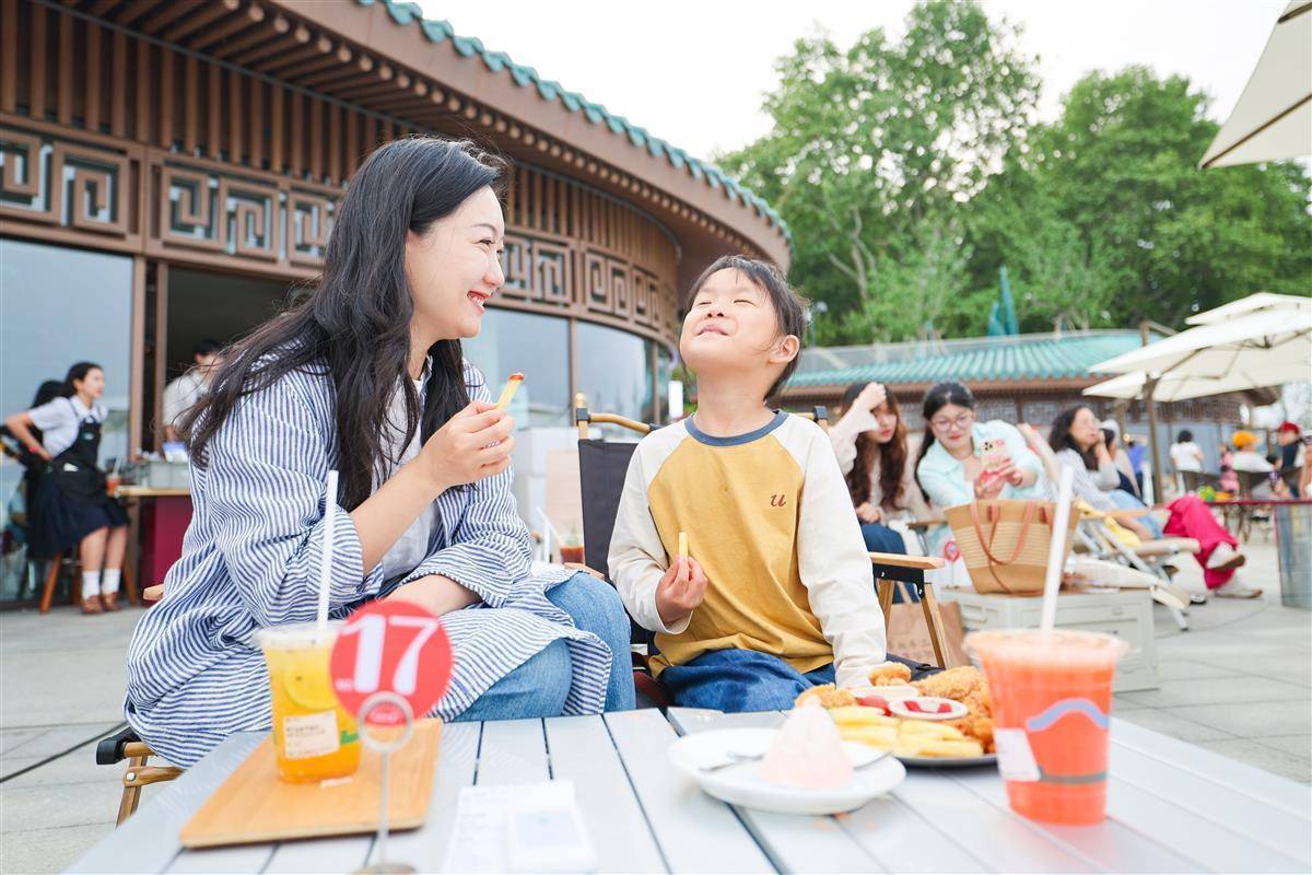 2025年4月19日,一对母子在东湖的湖光山色中度过美好惬意的午后时光。