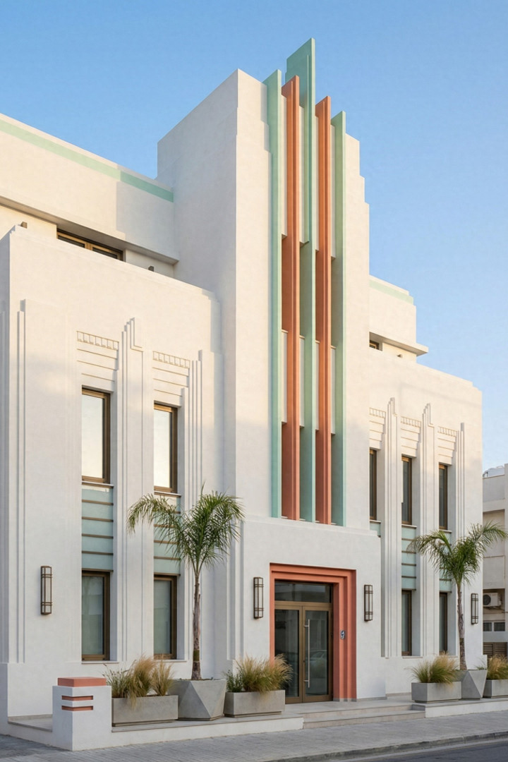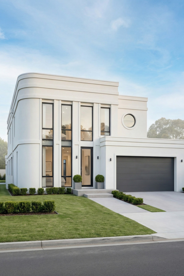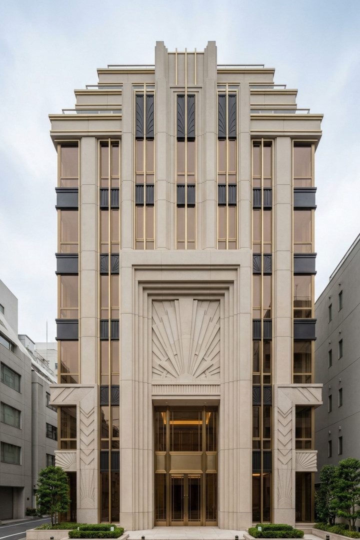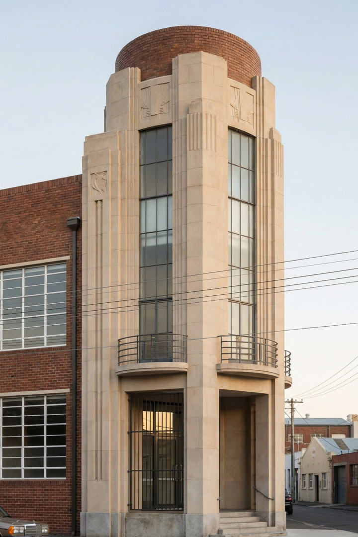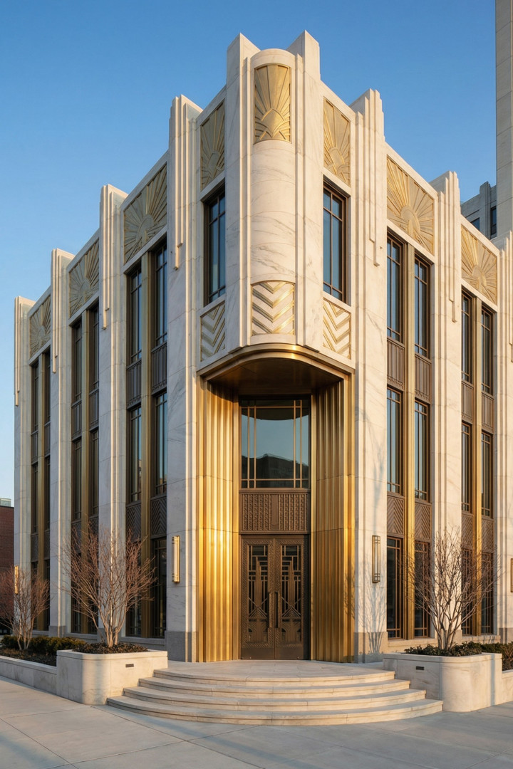 我们始终对经典装饰艺术风格在历经岁月的成熟与沉淀之后,融入现代街道与住宅的演变历程痴迷不已。这些建筑立面巧妙借鉴了20世纪30年代市政厅、电影院、远洋客轮以及天际线建筑的元素。然而,我们并未全盘接纳,而是摒弃了其中繁复的装饰,仅保留原有的韵律,进而让光影与反射成为视觉的核心焦点。